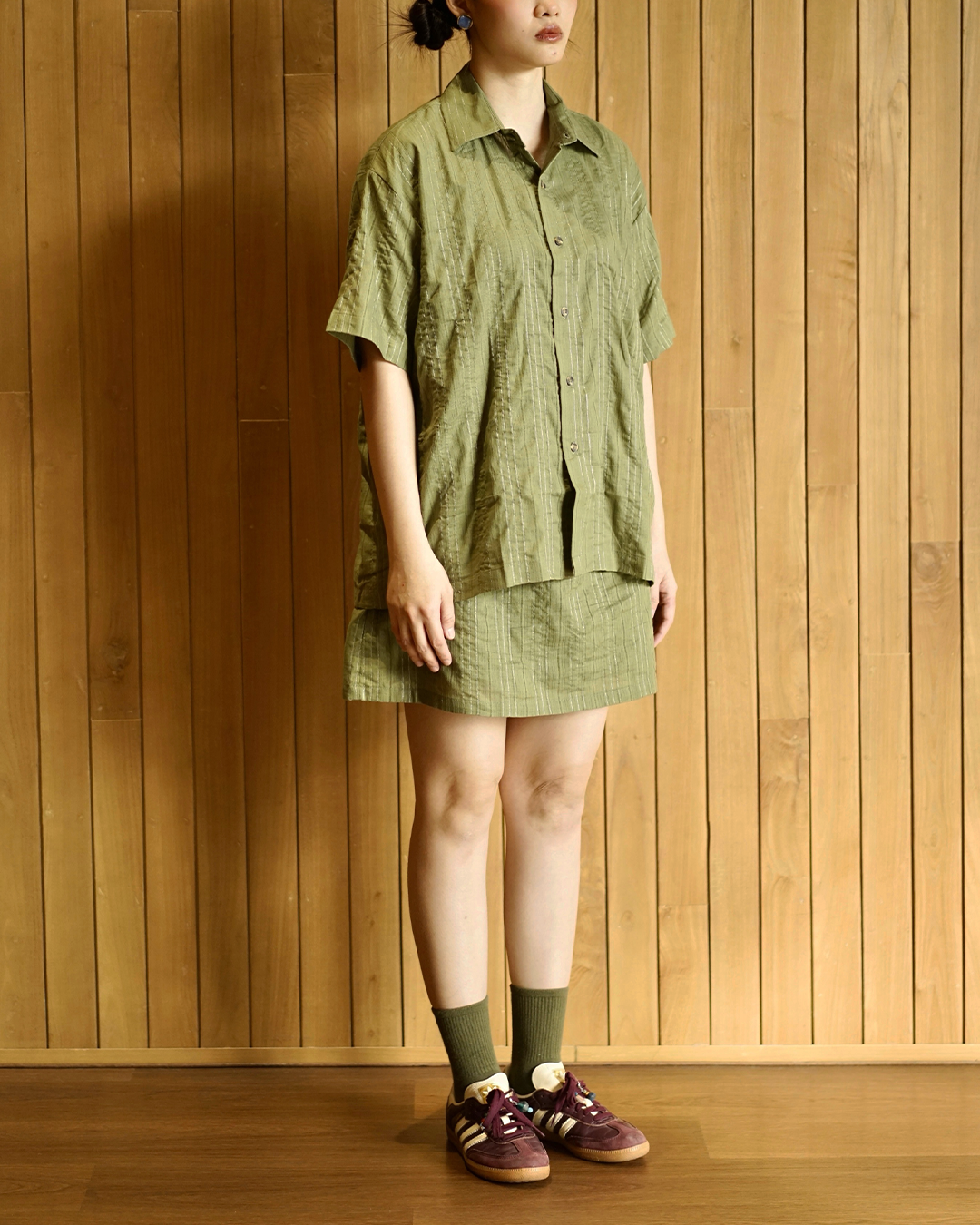 A unisex shirt with loose fitting silhouette, made with cotton fabric and stripes detail. Available in 2 sizes.